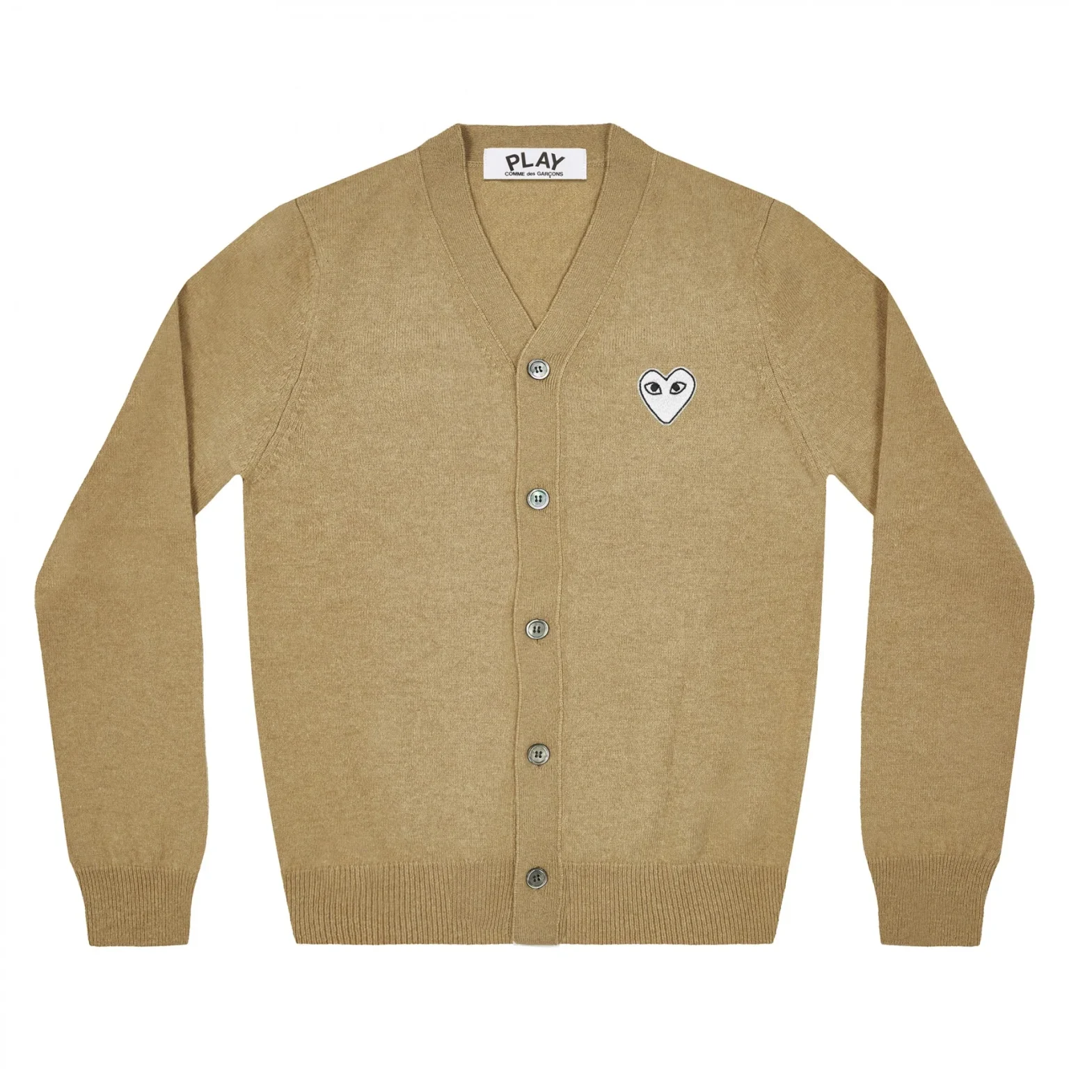 CDG Play Men Cardigan White Heart Natural Series Camel