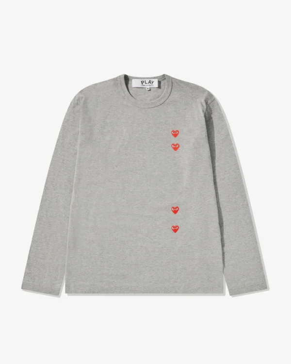 CDG Play Multi Red Heart Long Sleeve T-Shirt Grey