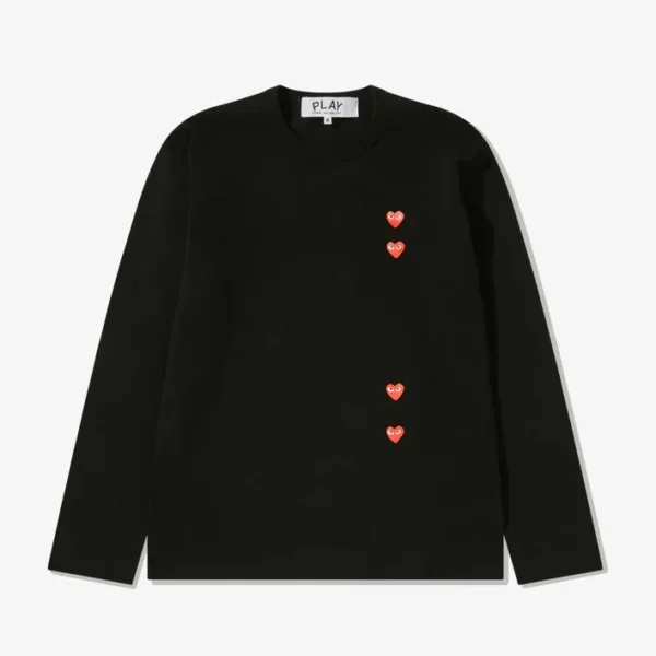 CDG Play Multi Red Heart Long Sleeve T-Shirt Black