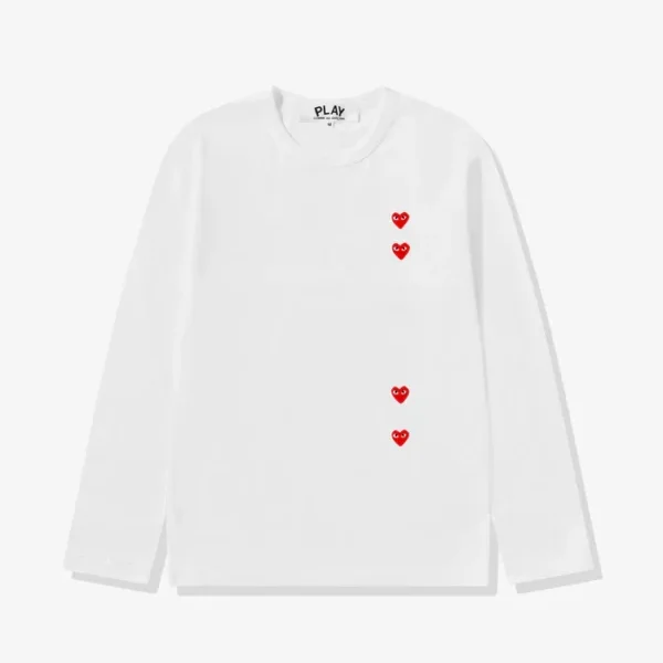 CDG Play Multi Red Heart Longsleeve T-Shirt White
